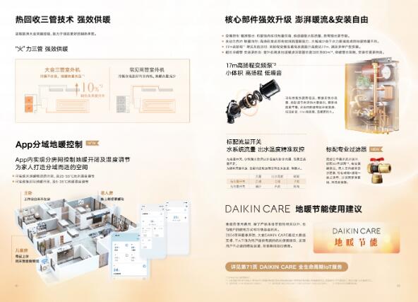 除了卓越的静音效果,大金中央空气系统还具备温湿平衡、新风联动等优势,搭载魔力三管技术,可实现除湿不降温,避免潮湿环境带来的不适感;同时支持全屋智联,通过金制空气APP可远程调节风速、模式,精准控制静音效果。
